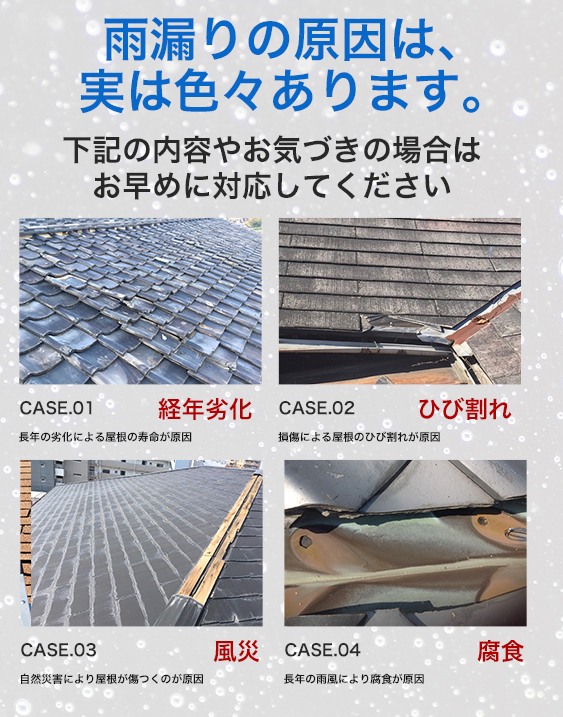 雨漏り個所特定作業・雨漏り修繕・雨漏り対策など